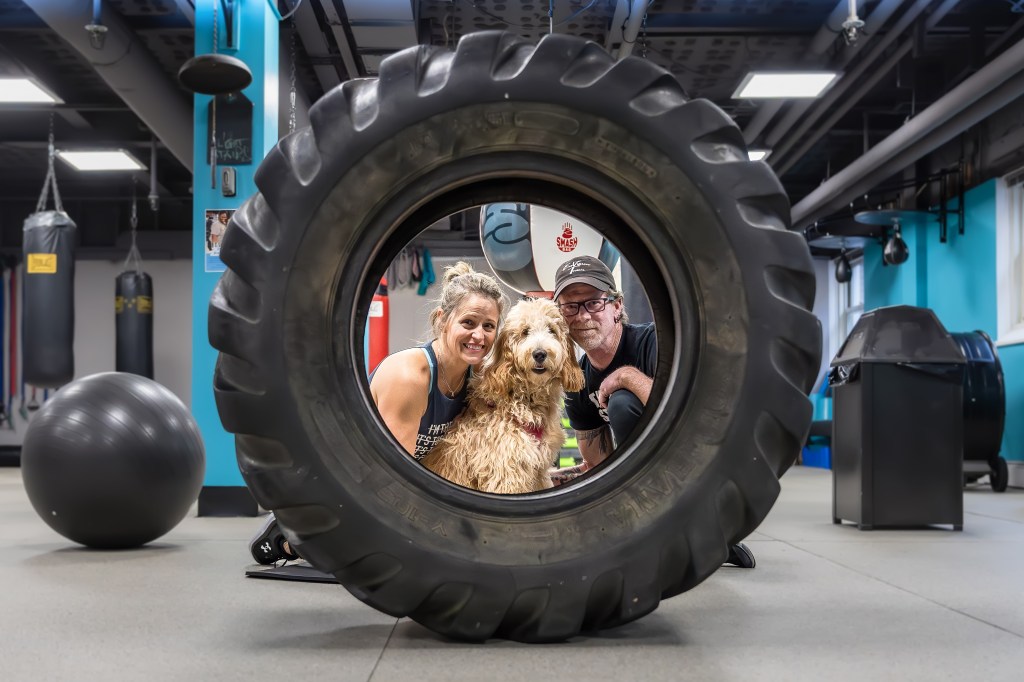 Behind the scenes, her husband Chuck is the backbone of EnVision Train, bringing Theresa’s visions to life. And let’s not forget Laila, our gym dog, who adds an extra dose of fun and motivation to every session.